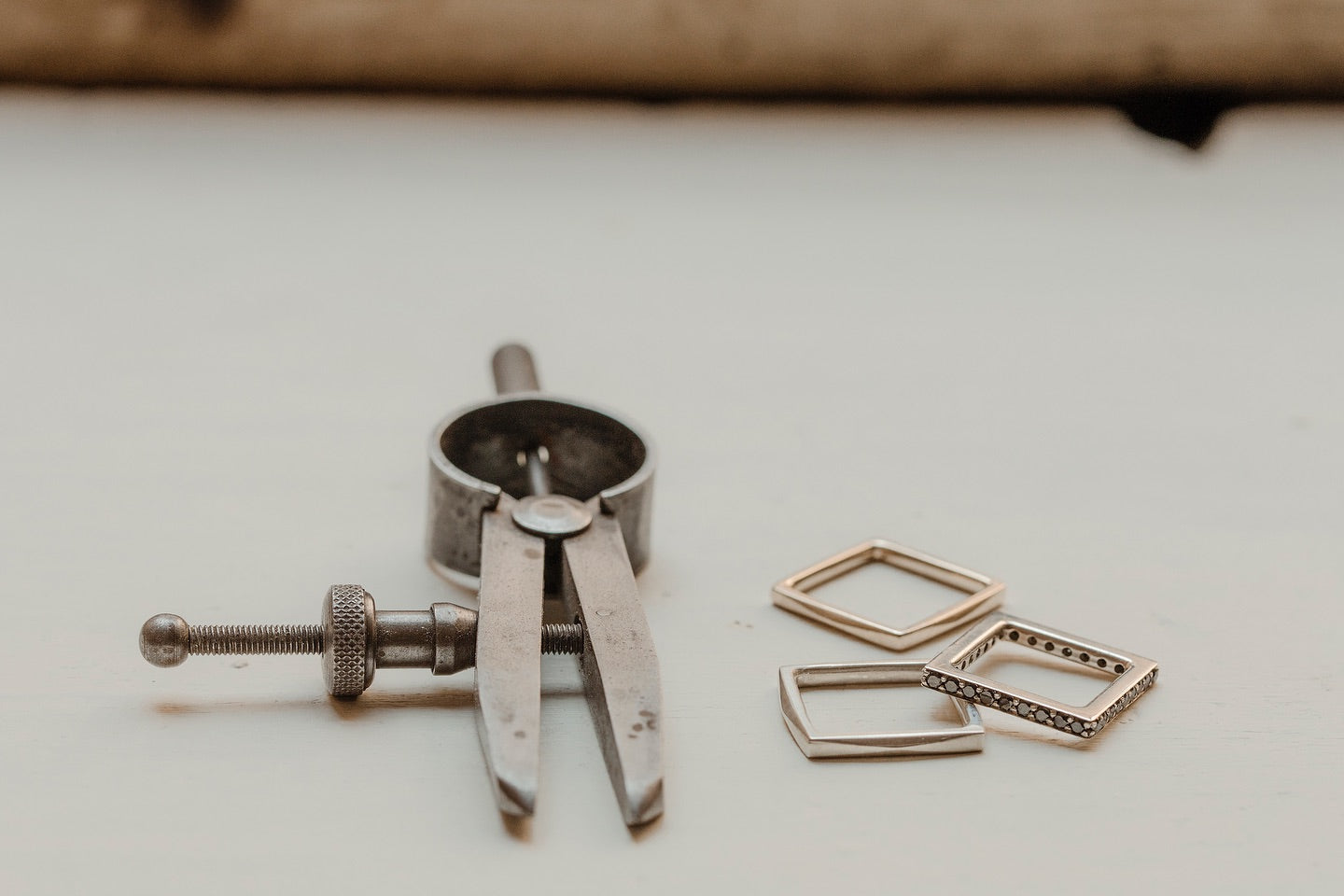 La collezione che identifica lo stile elegante e contemporaneo del brand ispirato ai bugnati dei palazzi rinascimentali realizzati in oro champagne, colore caratteristico del brand.