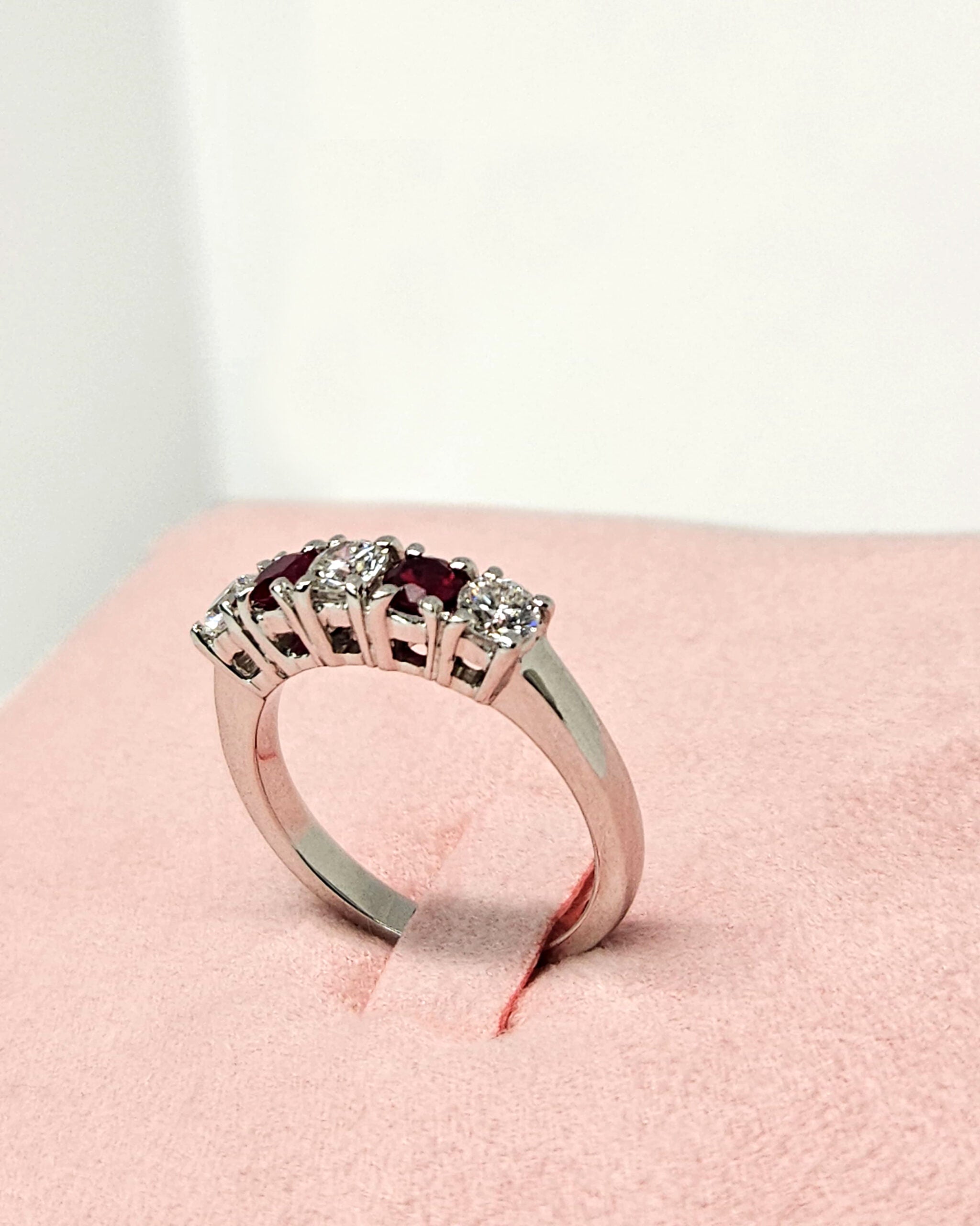Anello Oro Bianco con rubini e diamanti bianchi alternati