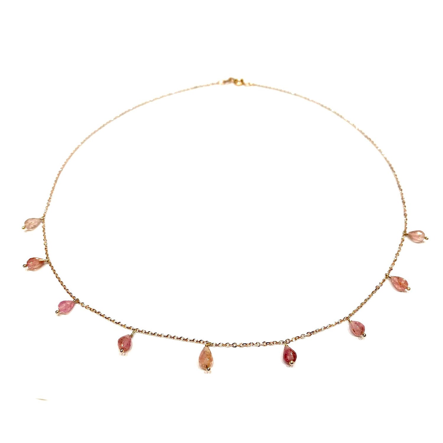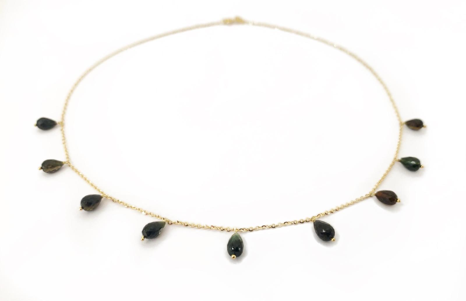 Collana girocollo in Oro giallo 750 e tormalina multicolor taglio a goccia.