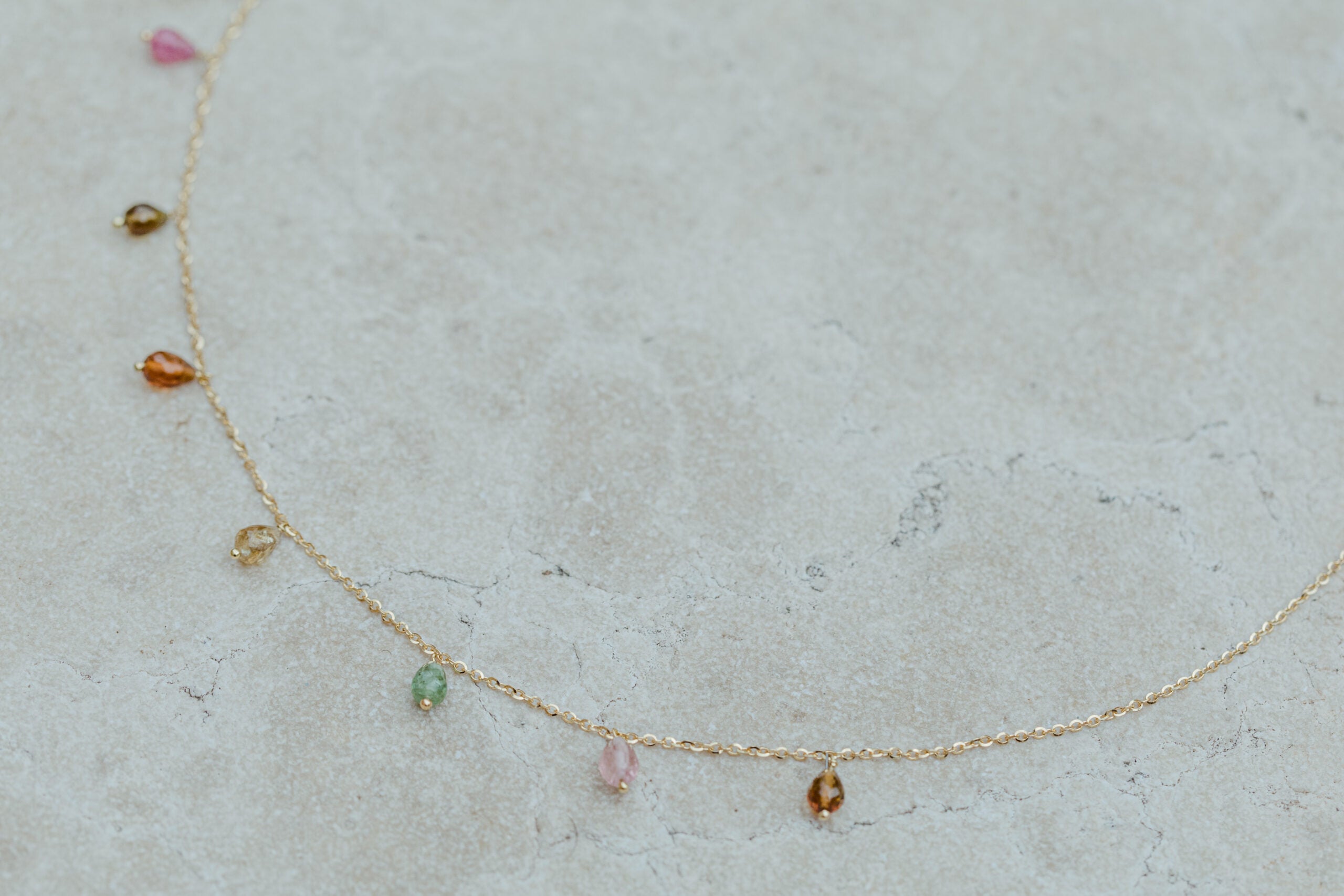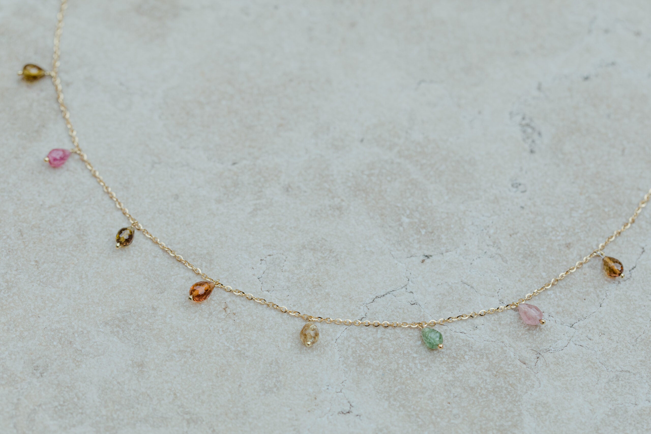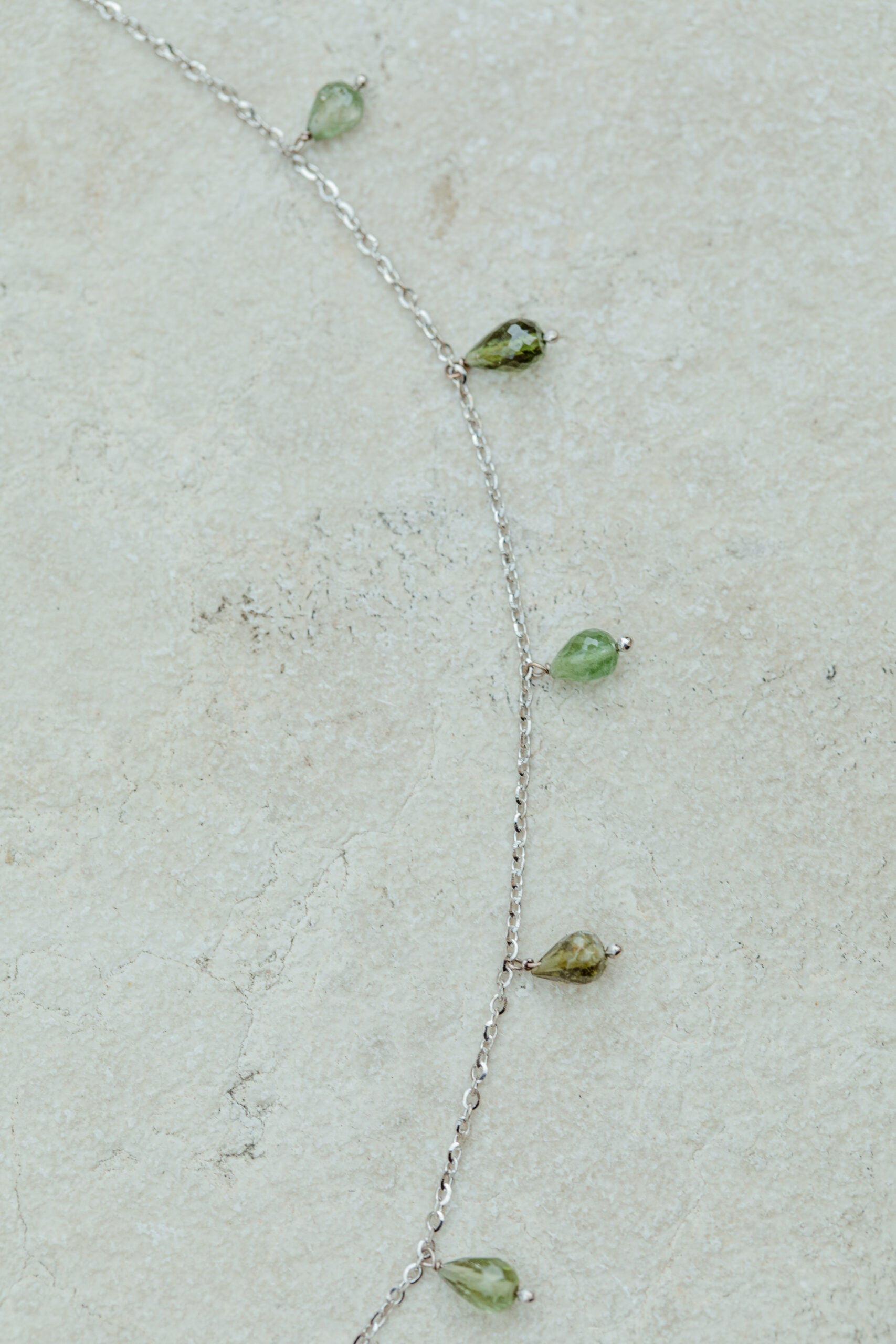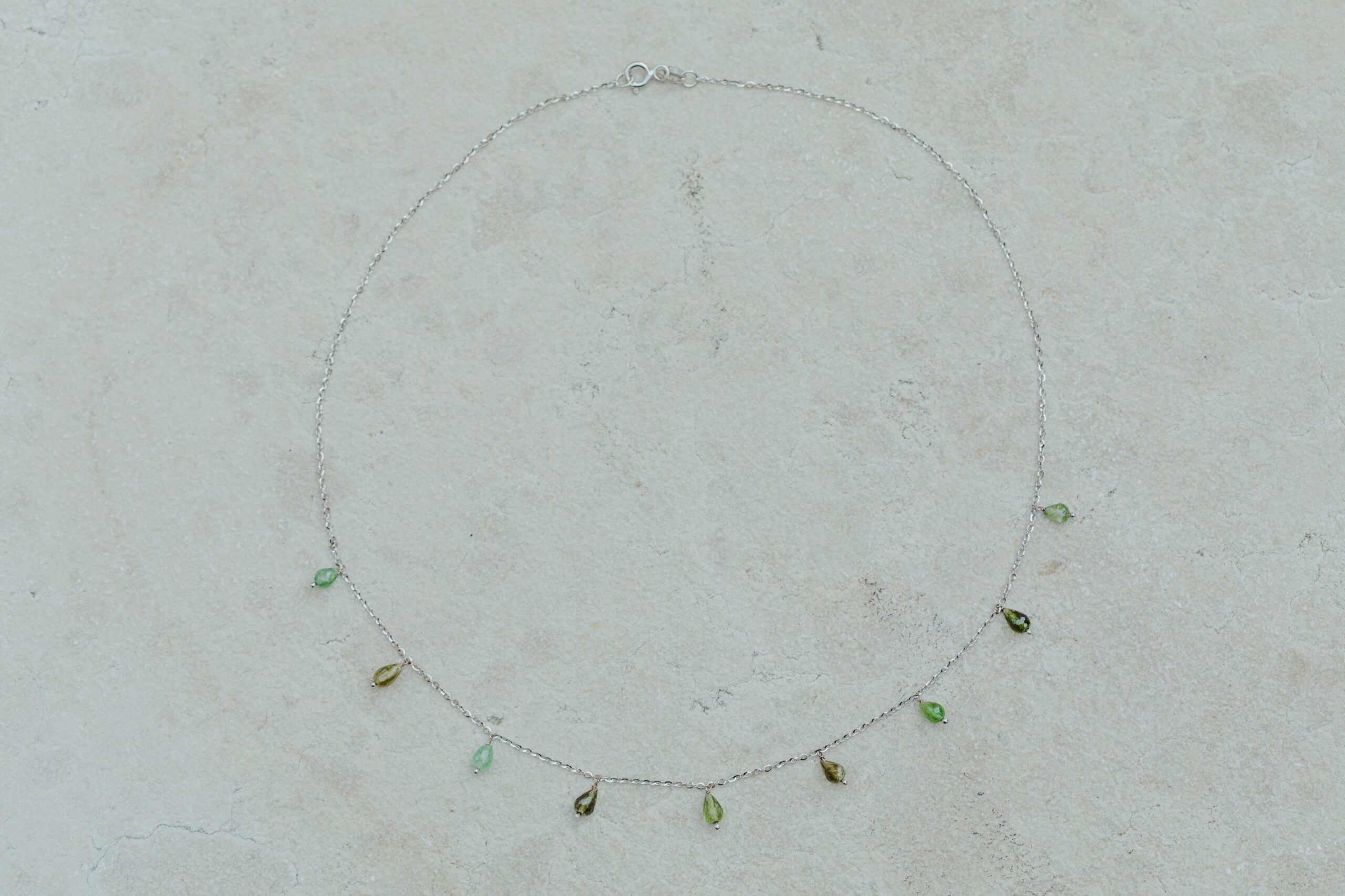 Collana girocollo in Oro Bianco 750 e tormalina verde taglio a goccia.